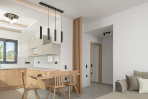 This country house has a ground floor area of 78 m2. Upon entering the villa, you will find a living room with a 60″ SMART TV, a fully equipped kitchen for preparing meals, and a dining area for entertaining your loved ones.