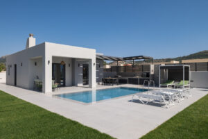 • The villa is part of the Eolides villas complex, which includes two other villas, Kanaki II and Polimili III. Each villa has a private pool and separate facilities. Guests have the entire property at their disposal for private use! Full access inside and outside the villa! No shared areas! No stairs!